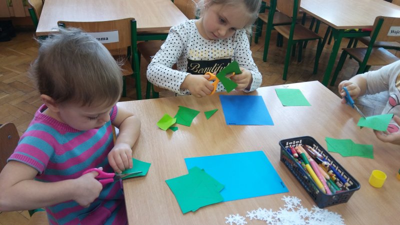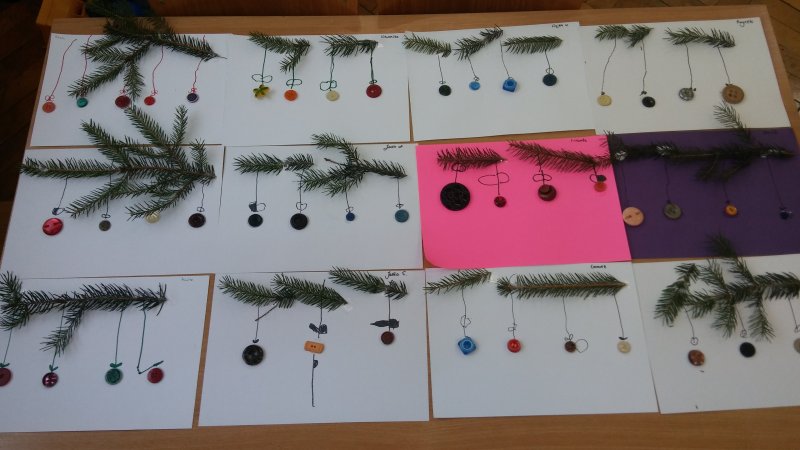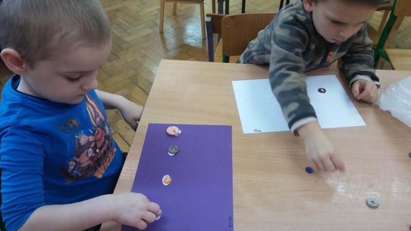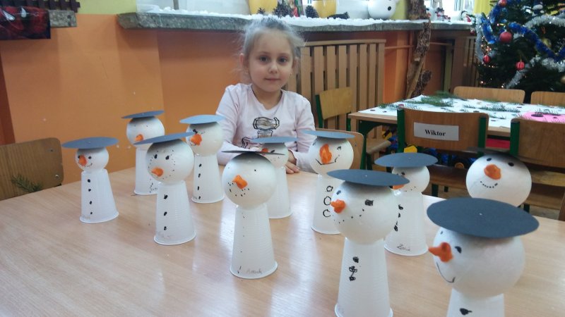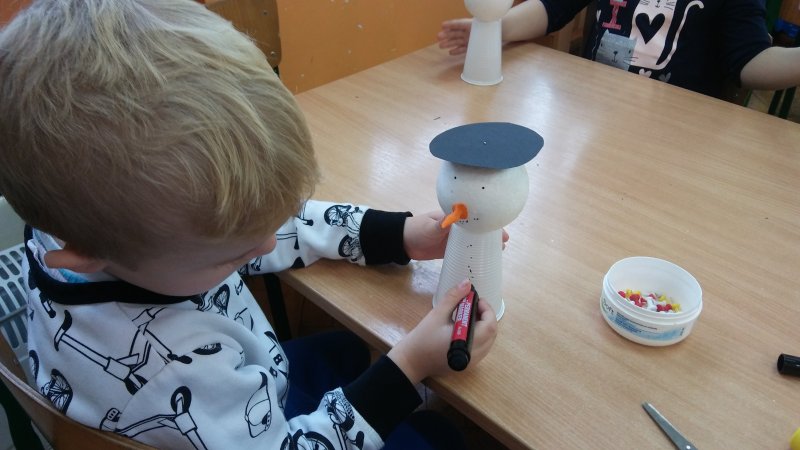 Dzisiaj robiliśmy bałwanki 😊 oraz guzikowe bombki😊,które wisiały na gałązkach świerku
