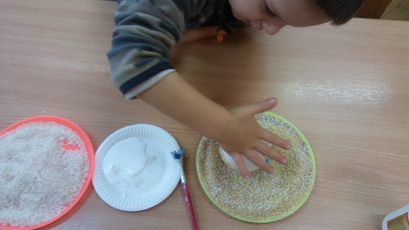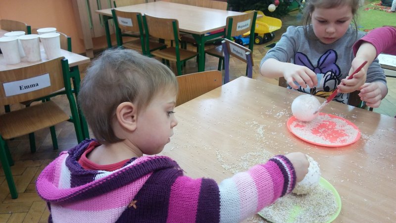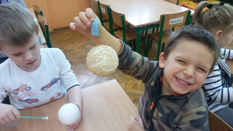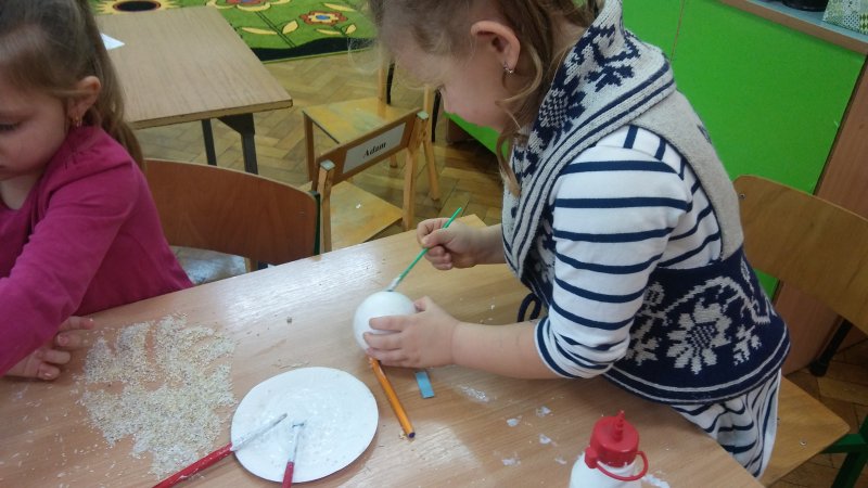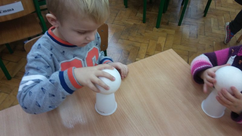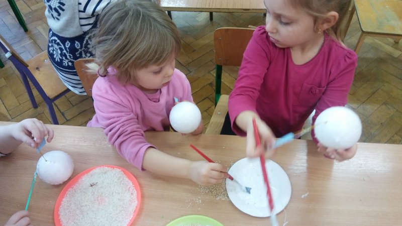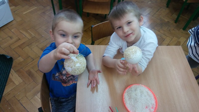 Dzisiaj dzieci ozdabiały bombki z sceropianu kasza i ryzem 😊