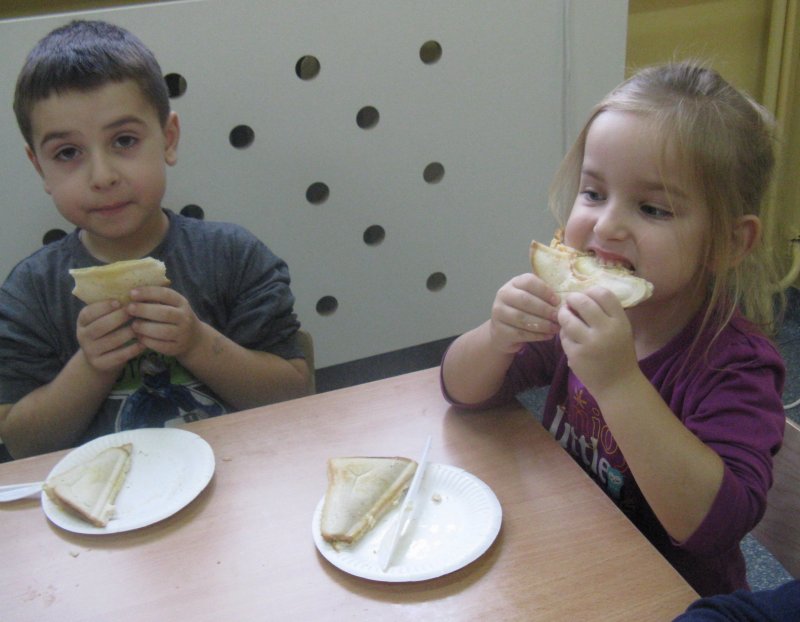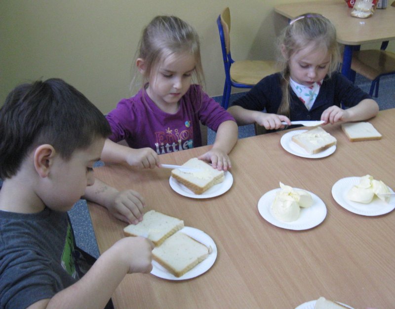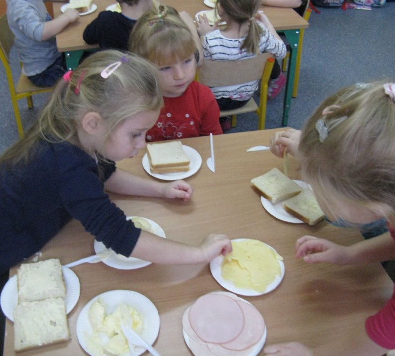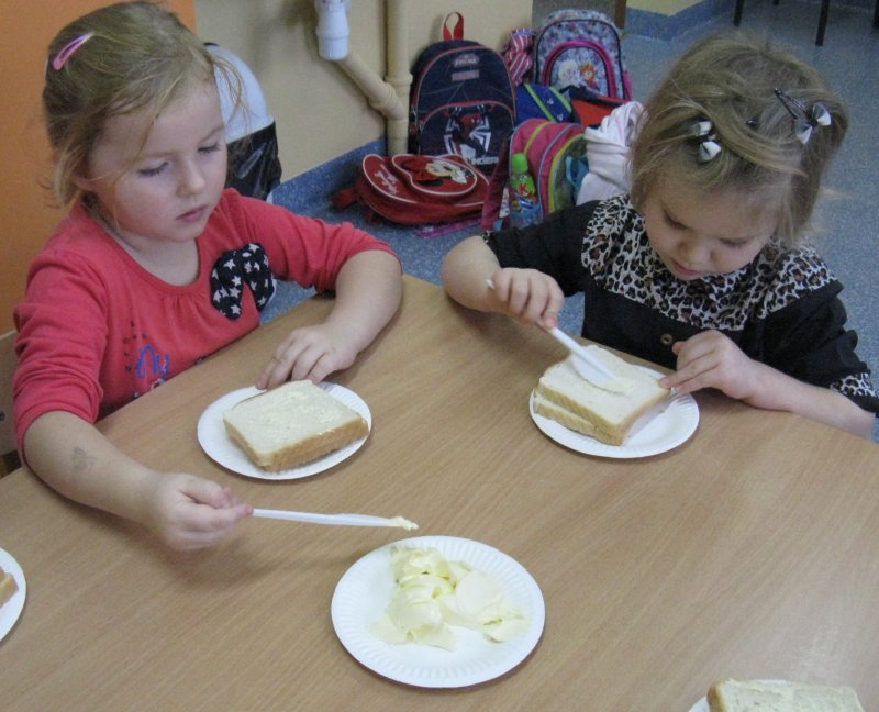 Samodzielnie przygotowujemy sobie II śniadanko - tosty mniam, mniam ;)