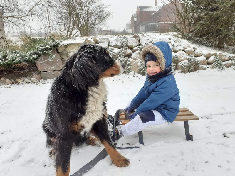 Spadł śnieg super radość dla dzieci 🌨️🌨️🌨️dziękujemy za zdjęcie mamie Piotrusia, jak Piotruś korzysta, że spadł śnieg 😉