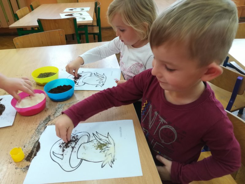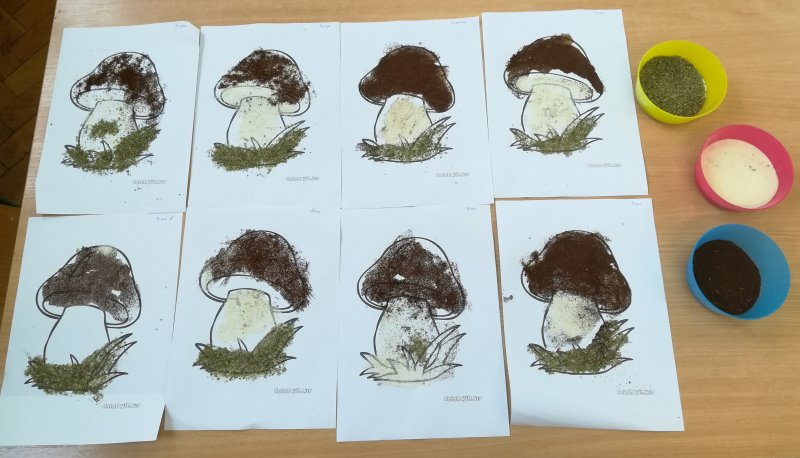 Grzybki tu i tam... Nietypowe grzybki zrobiliśmy przy użyciu kaszy mannej, kawy i majeranka 😉