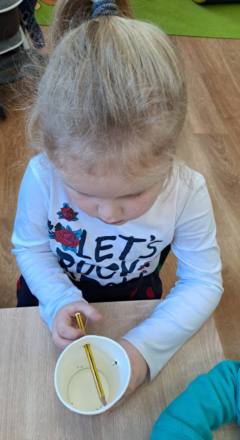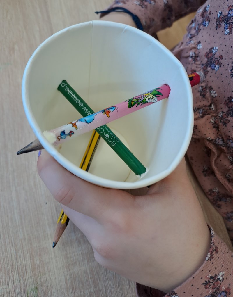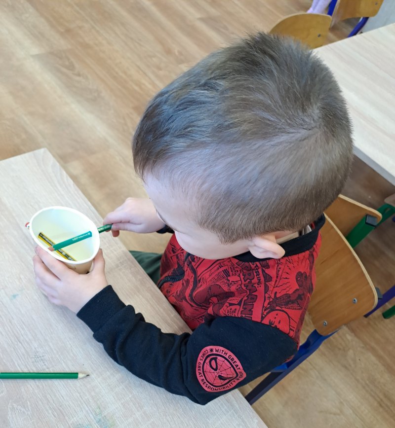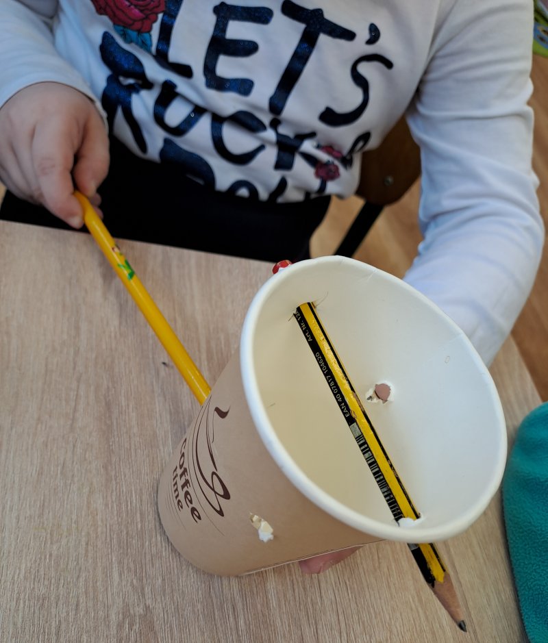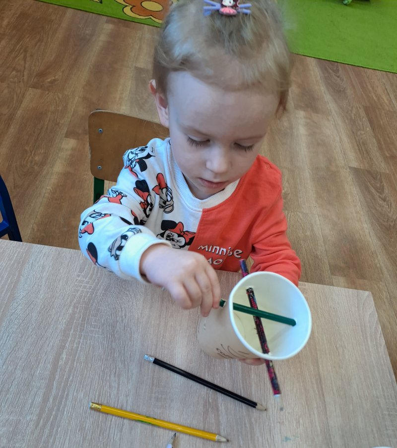 Terapia ręki. 😁 kubek z dziurkami i kilka ołówków i jest zabawa 🙂